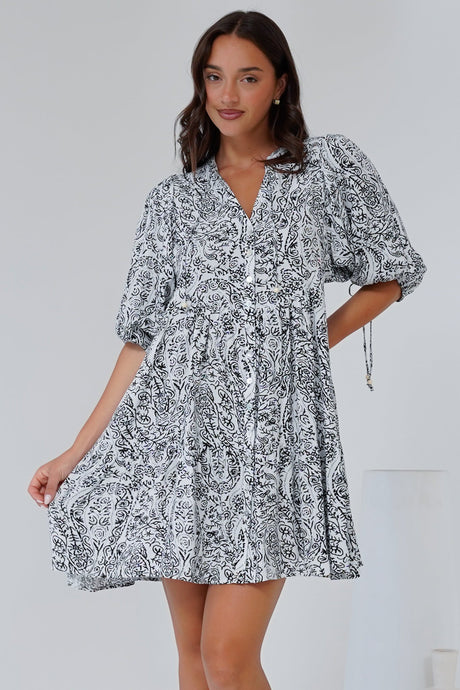 Lea Mini Dress - 3/4 Sleeve Babydoll Dress in Linetti Print