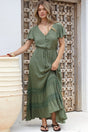 Narissa Maxi Dress - A-Line Dress with Lace Splicing and Flutter Sleeves in Khaki