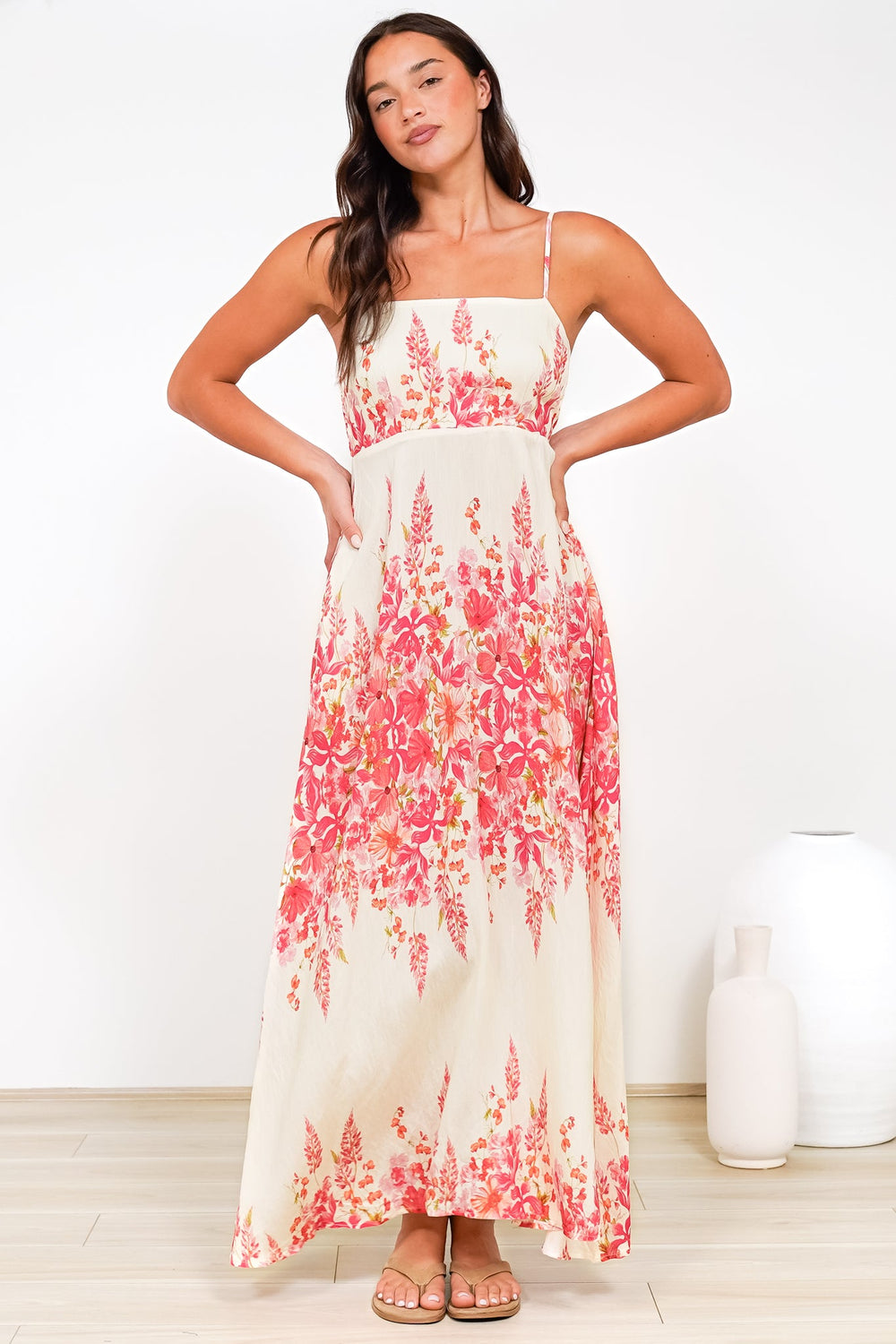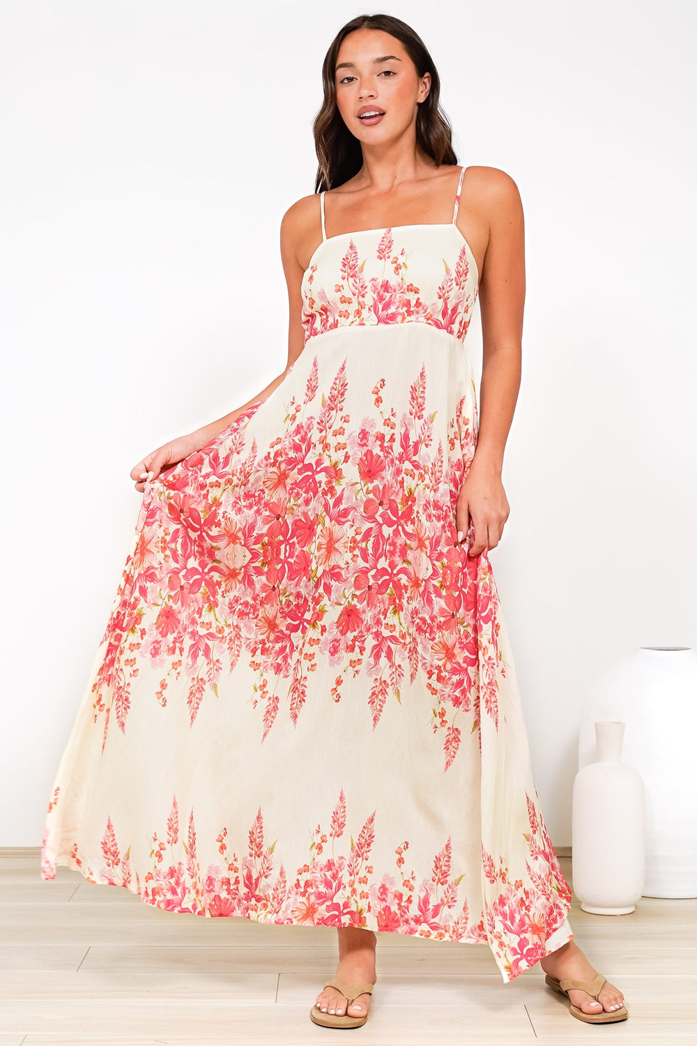Radley Maxi Dress - Empire Line Sun Dress with Adjustable Straps in Blanche Print