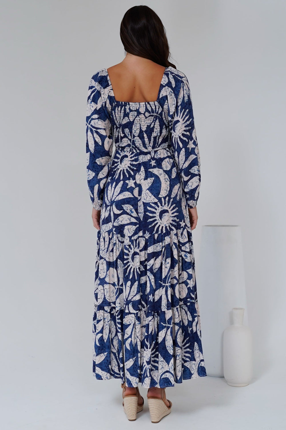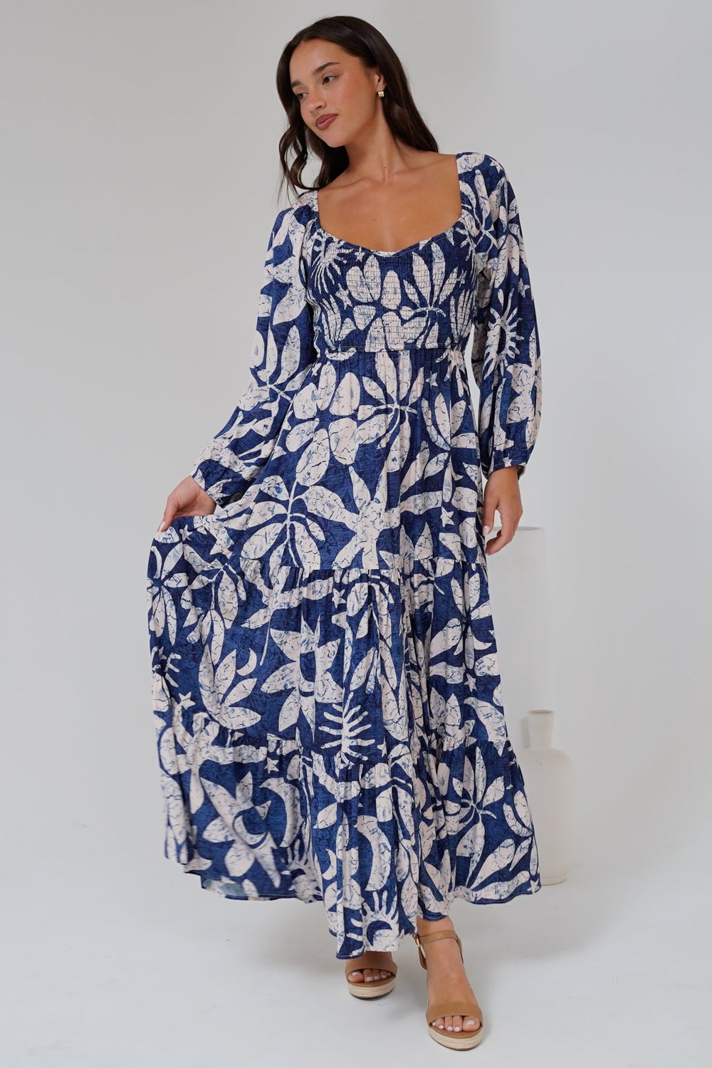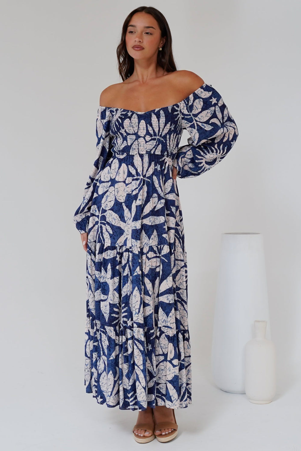 The Salome Maxi Dress offers a versatile on or off-shoulder design with an elasticated bodice, balloon sleeves, and a flattering tiered skirt. Its flowing a-line silhouette creates a dreamy, effortless look for any occasion.