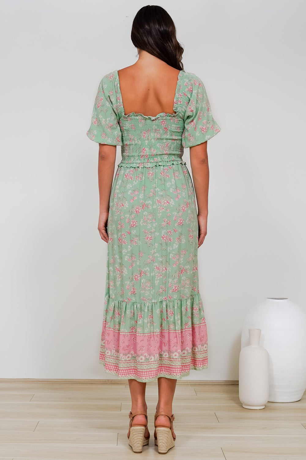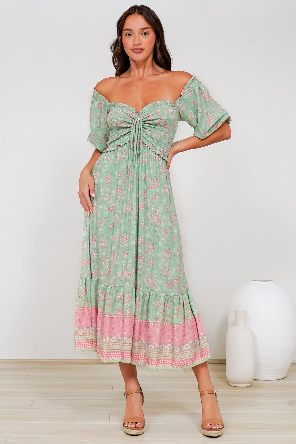 The Wellington Midi Dress is a romantic, versatile piece that captures meadow-chic style with its delicate floral print and charming border hem. Featuring an elasticated, shirred bodice that beautifully cinches the waist, this dress can be worn elegantly off the shoulder or classically on the shoulder. The adjustable drawstring bust detail and flowy skirt make it ideal for garden parties and warm-weather events.