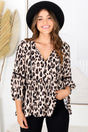Dido Top - 3/4 Sleeve Smock Top with Lattice Inserts in Leopard