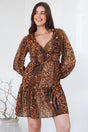 Step into effortless style with the Arcadia Mini Dress, a stunning fusion of animal and floral prints in warm, earthy tones. This eye-catching dress features a v-neckline, long sheer sleeves, and a flowy tiered skirt that moves beautifully with every step.