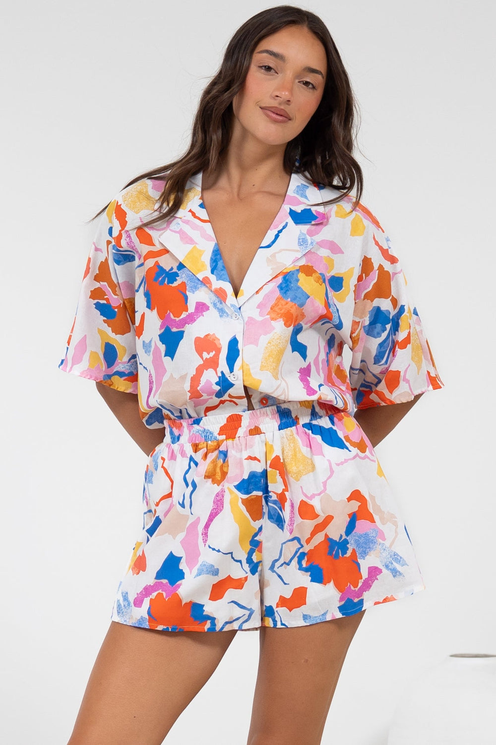 Remira Shorts - High Waisted Short with Elasticated Waistband in Isadora Print