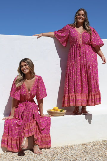 Hellen Maxi Skirt - High Waisted Skirt with Front Splits in Clavelle Print Pink