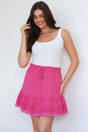 Ava Mini Skirt - High Waisted Pleat Detailed Lace Trim Skirt in Hot Pink