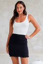 Huxa Mini Skirt - High Waisted Skirt with Raw Trim Hemline in Black