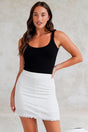 Huxa Mini Skirt - High Waisted Skirt with Raw Trim Hemline in White