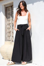 Malta Pants - High Waisted Wide Leg Pants with Tie Waist in Black