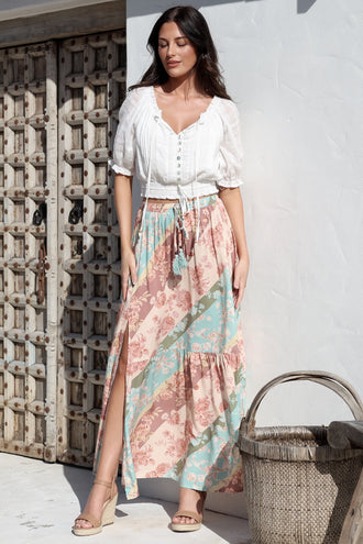Hellen Maxi Skirt - High Waisted Skirt with Front Splits in Maryanne Print Tan