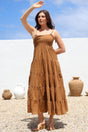 Nessa Maxi Dress - Tie Up Strap Tiered Sun Dress in Tan