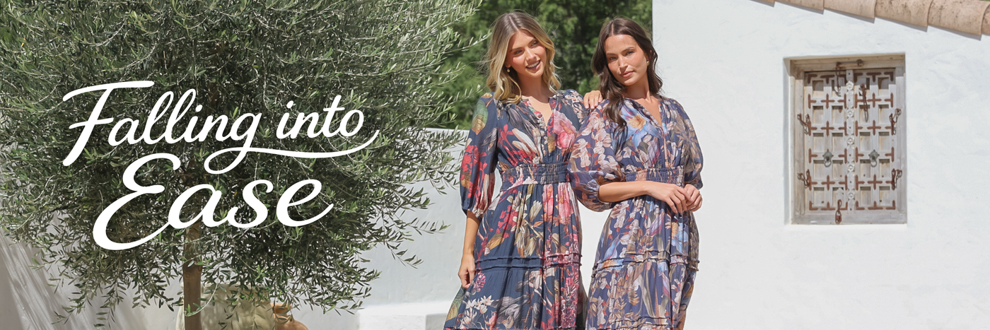 Flowing maxis in rich, inky florals. Easy midis in deep navy, warm wine and chocolate. Relaxed denim in soft blues and olive tones. Breezy tops in classic neutrals, the kind of pieces you reach for again and again.