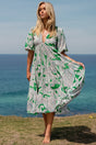 JAASE - Eve Midi Dress: V Neck Tiered Dress with Option Waist Tie in Kashira Print
