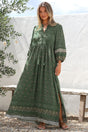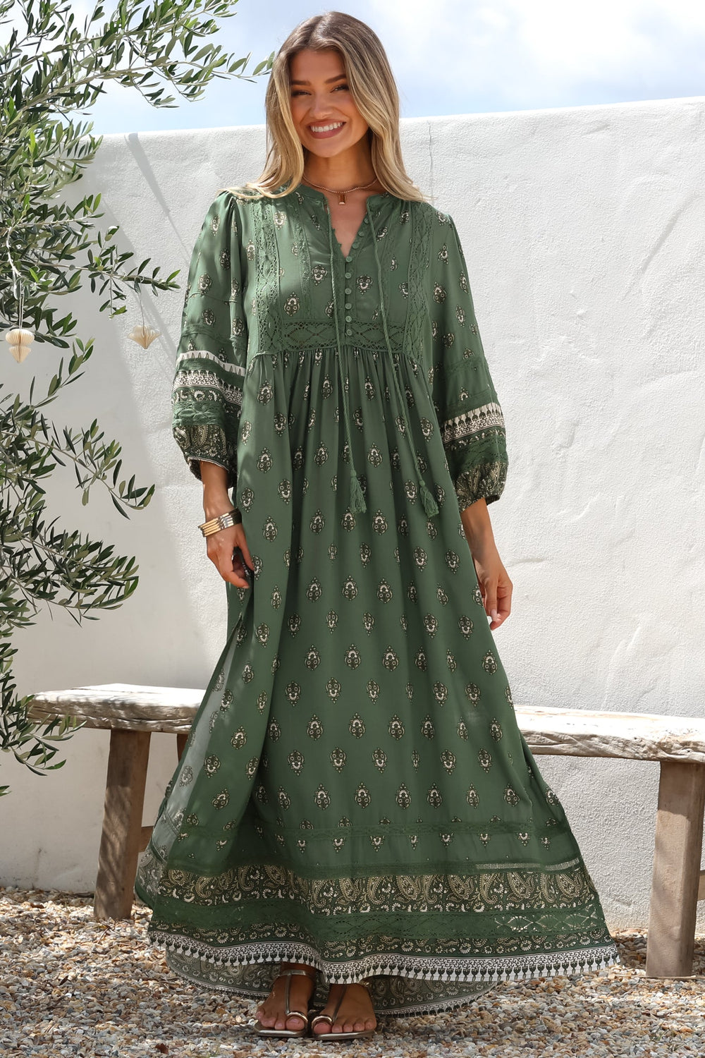 JAASE - Meadow Maxi Dress: Lace Insert Detailed Dress with Side Splits in Viridian Print