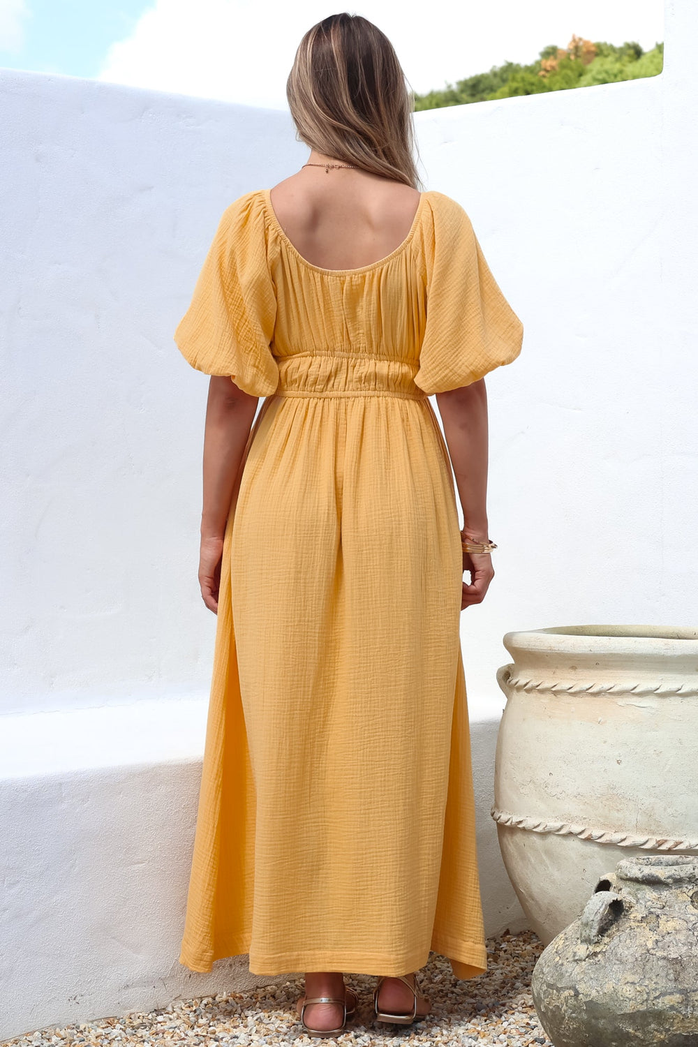 Our Teddie Maxi Dress is all about effortless femininity and sunshine-ready style. With its floaty silhouette, soft textured fabric, and versatile off-the-shoulder design (that can also be worn on the shoulder), it’s perfect for everything from beach strolls to brunch dates.