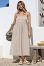 Asha Midi Dress - Constrast Stitch Shirred Elasticated Bodice Sun Dress in Beige