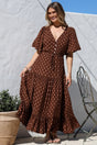 Prepare to be captivated by the sheer beauty of our Tassia Maxi Dress! Featuring a graceful V-neckline, a buttoned bodice allowing you to adjust your style with ease, a pull-in waist tie to accentuate your curves and gorgeous bell sleeves. Perfect for your next special event.