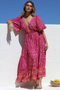 Tassia Maxi Dress - Buttoned Bodice Pull Tie Waist Dress in Quinne Print