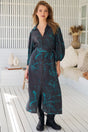 JAASE - Whitney Midi Dress: Collared Button Down Shirt Dress with Belt in Midnight Lilly Print