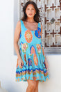 Benni Mini Dress - Scoop Neckline Tiered Sun Dress in Boardwalk Print