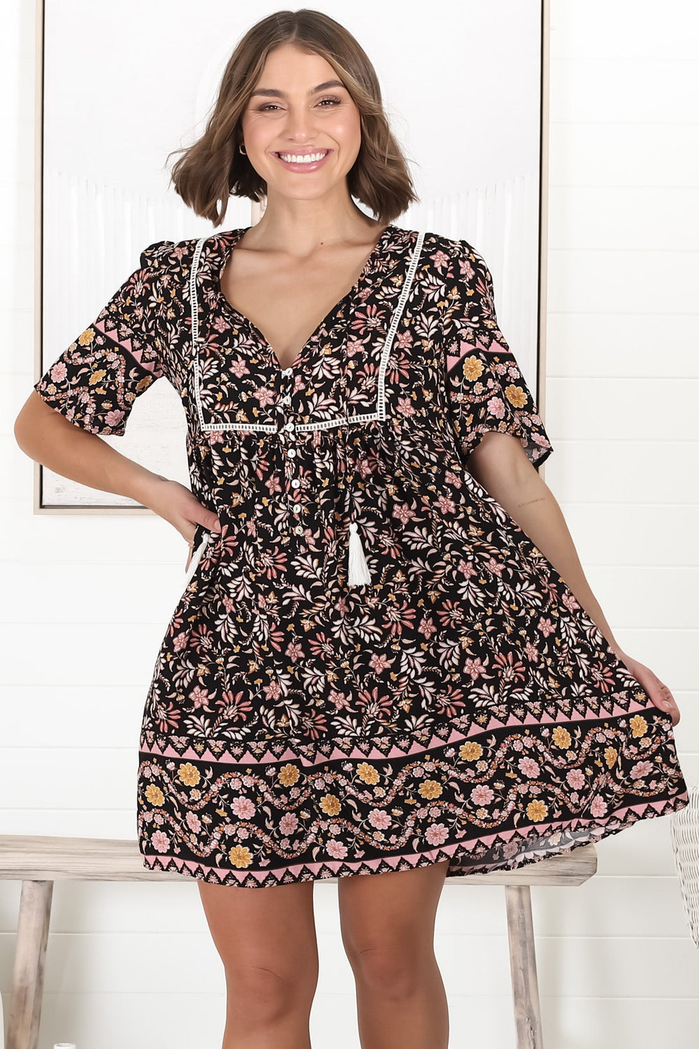 • Chia Mini Dress - Babydoll Dress in Lyanna Print