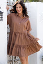 Estelle Mini Dress - Collared Tiered Smock Dress in Tan
