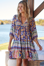 • JAASE - French Mini Dress: Yoke Neckline Dress with Matching Belt in Esme Print