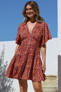 Sana Mini Dress - Bell Sleeve Button Down V Neck Dress in Rosina Print