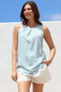 Genevieve Top - Crew Neck Sleeveless Linen Blend Top in Blue