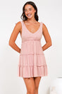 Lacy Mini Dress - Tie on Shoulder Strap Frill Splicing Tiered Sun Dress in Blush