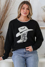 Loretta Jumper - Crew Neck Cowgirl Motif Knit in Black