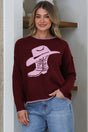 Loretta Jumper - Crew Neck Cowgirl Motif Knit in Wine