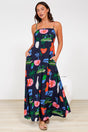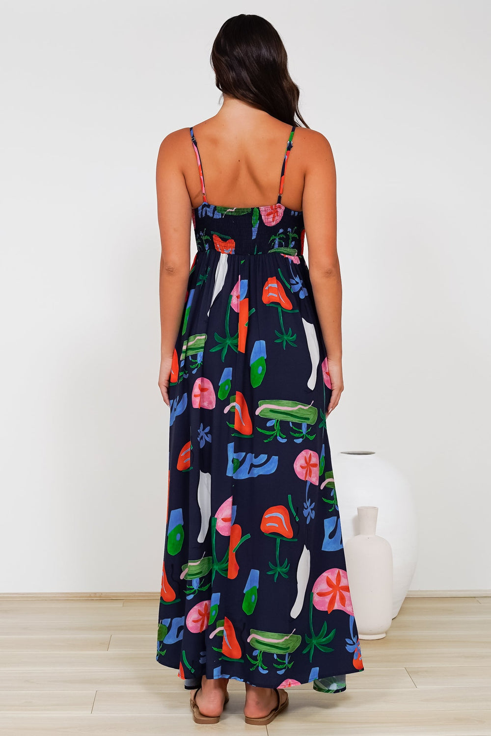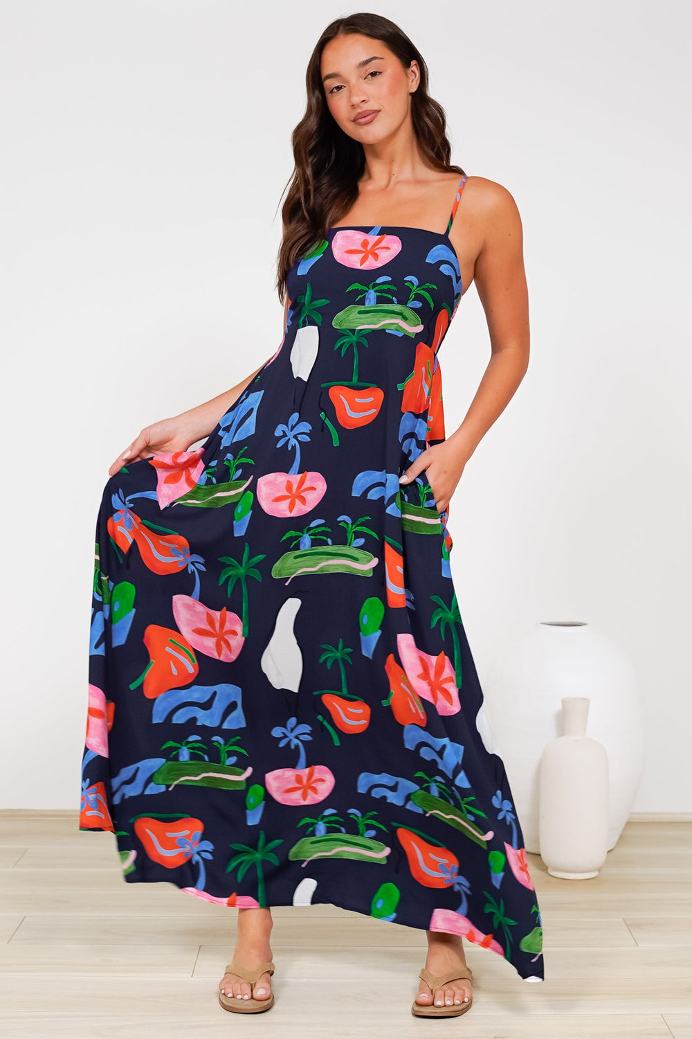 Radley Maxi Dress - Empire Line Sun Dress with Adjustable Straps in Cruise Print Navy