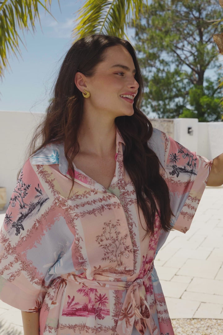 The Robina Playsuit is your perfect go-to for laid-back summer days and sunset strolls. Featuring a relaxed fit, tropical-inspired print, and a matching waist tie for a flattering silhouette, this piece effortlessly blends comfort with island charm.