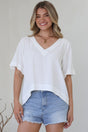 Shandy Top - V-Neck Boxy High Low Top with Short Sleeves in White