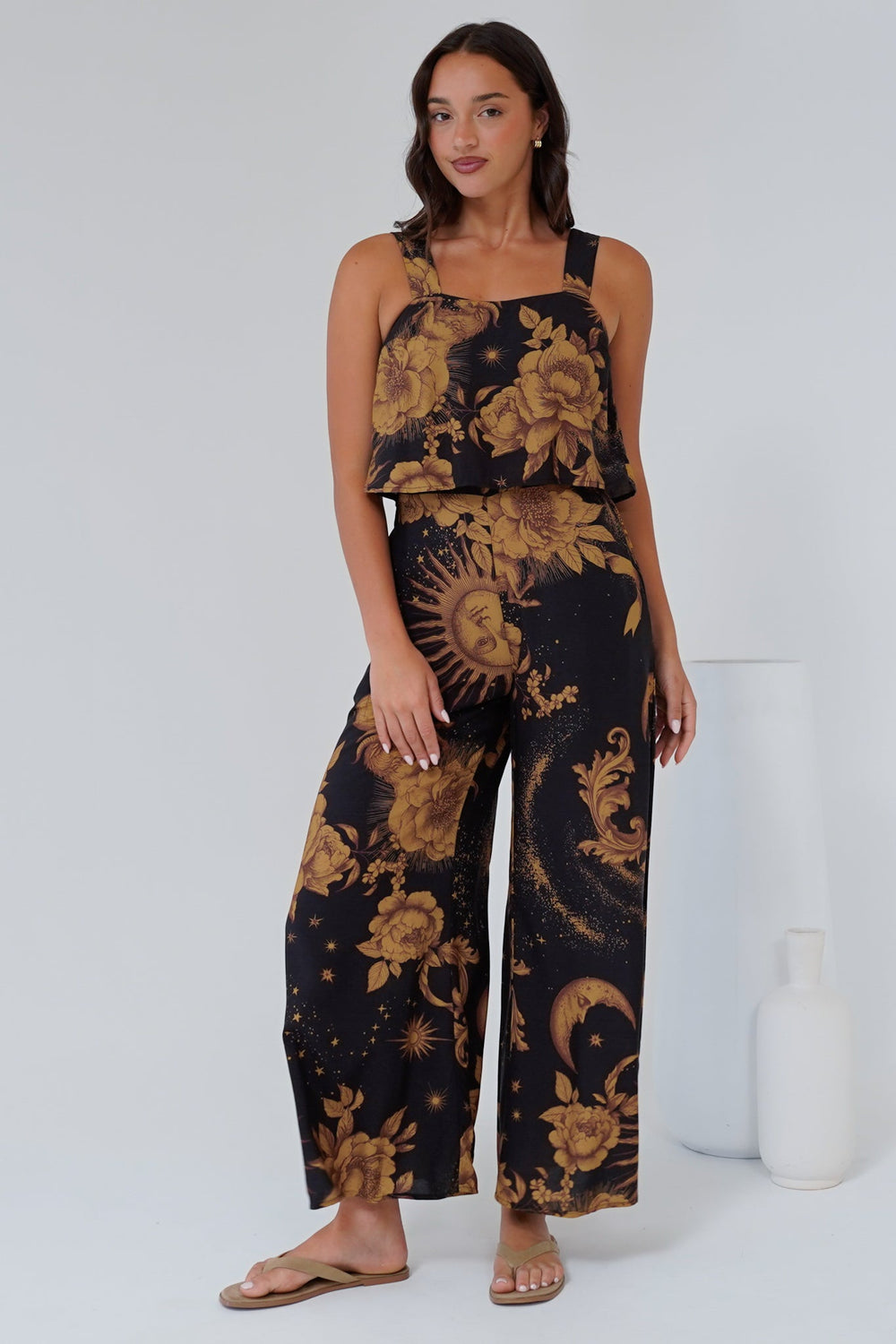 True Jumpsuit - Square Neckline Overall Jumpsuit in Goldie Print