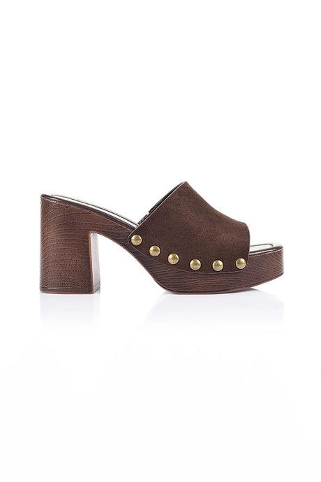 Jace PU Leather Gold Buckle Studded Belt - Brown