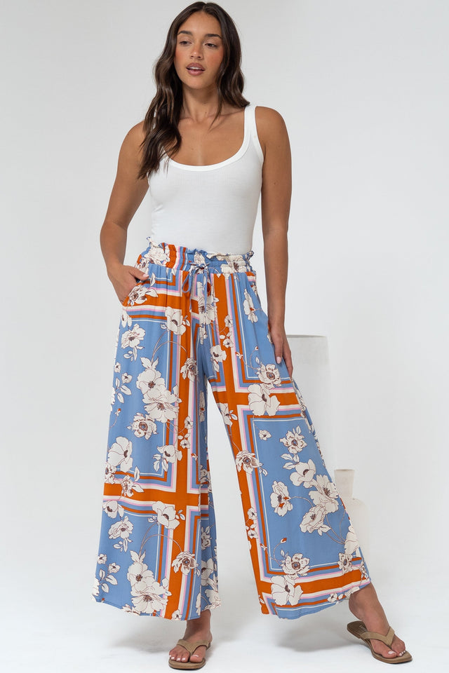 Mezza Pants - Paper Bag High Waisted Wide Leg Pants in Trinity Print