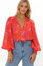 Violet Blouse - Frill Collar Button Down Balloon Sleeve Blouse In Vallie Print