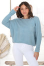 Joanne Knit Top - Crew Neckline Bat Wing Long Sleeve Top in Water Blue