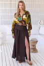 JAASE - Lea Maxi Skirt: High Waisted Linen Skirt with Split in Chocolate