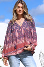 JAASE - Rue Top: V Neck Smock Top with Crochet Trim in Sadie Print
