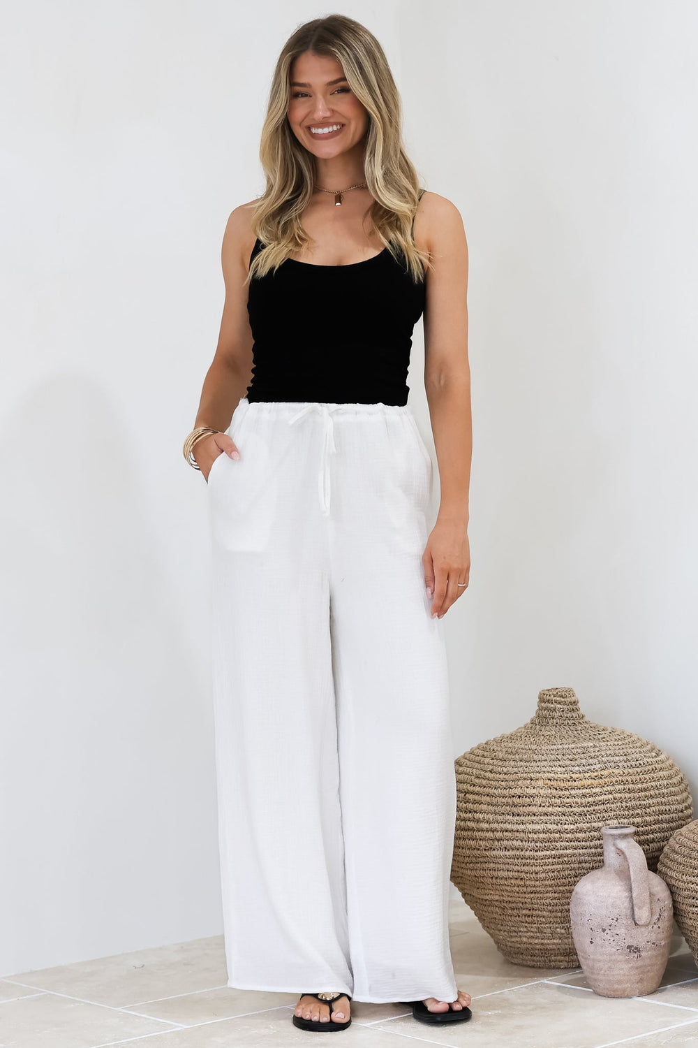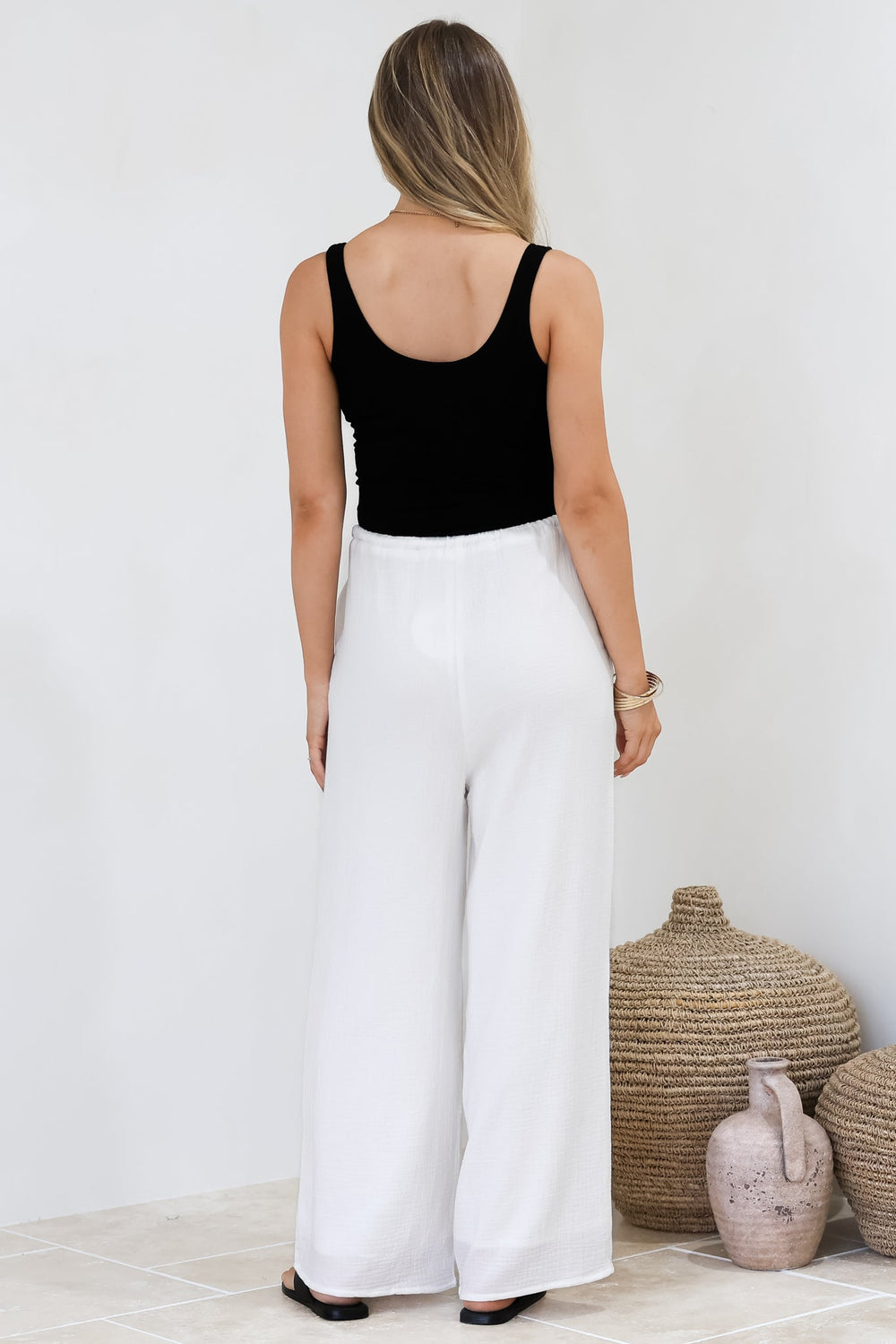 Zafira Pants - High Waisted Cheesecloth Pants with Waist Tie in White