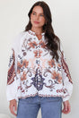 Discover the Portia Blouse – a sophisticated statement piece that brings effortless elegance to your resort wardrobe. This high mandarin collar button-down blouse features the captivating Magah Print, a mesmerising floral design that embodies luxe charm. Perfect for brunch, date nights, or elevated everyday wear.