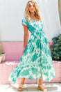 JAASE - Carmen Maxi Dress: Butterfly Cap Sleeve Button Down A Line Dress with Lace Trim in Capri Sea Print