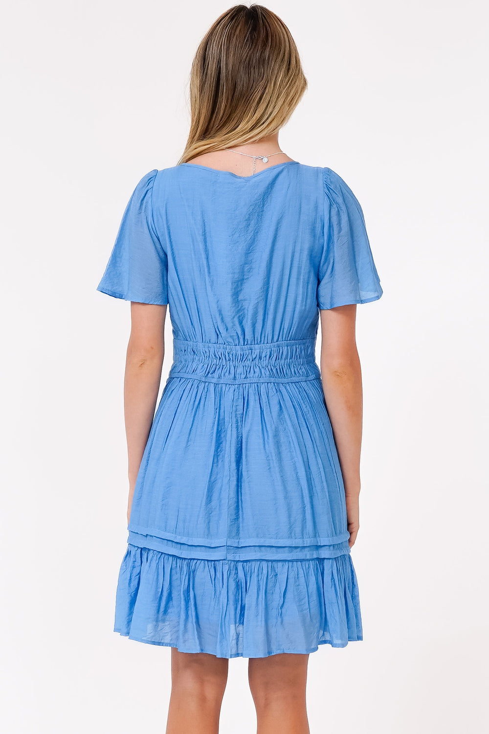 Payton Mini Dress - Pleat Detailed A-Line Dress with Cap Flutter Sleeves in Blue