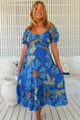 JAASE - Rini Midi Dress: Sweetheart Neckline Cut Out Detail Dress in Blue Bell Print