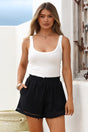 Baron Shorts - Elasticated Drawstring Waist Shorts with Lace Trim in Black