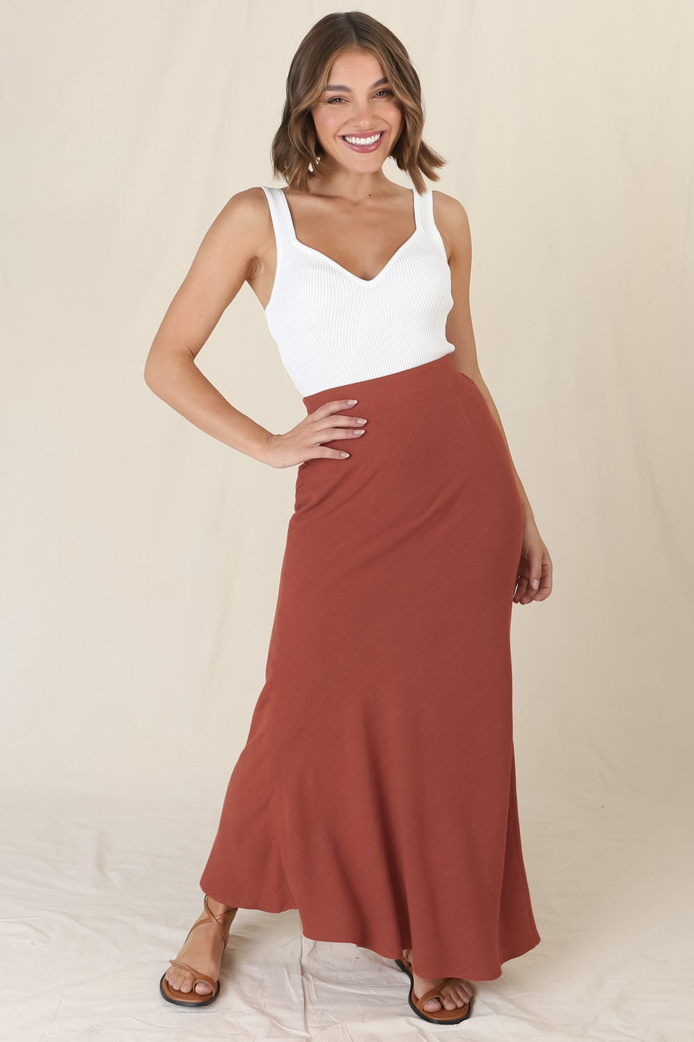 Lane Maxi Skirt - Linen Blend High Waisted Mermaid Silhouette Skirt in Rust