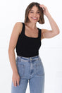 Edie Singlet - Square Neckline Double Layered Singlet in Black